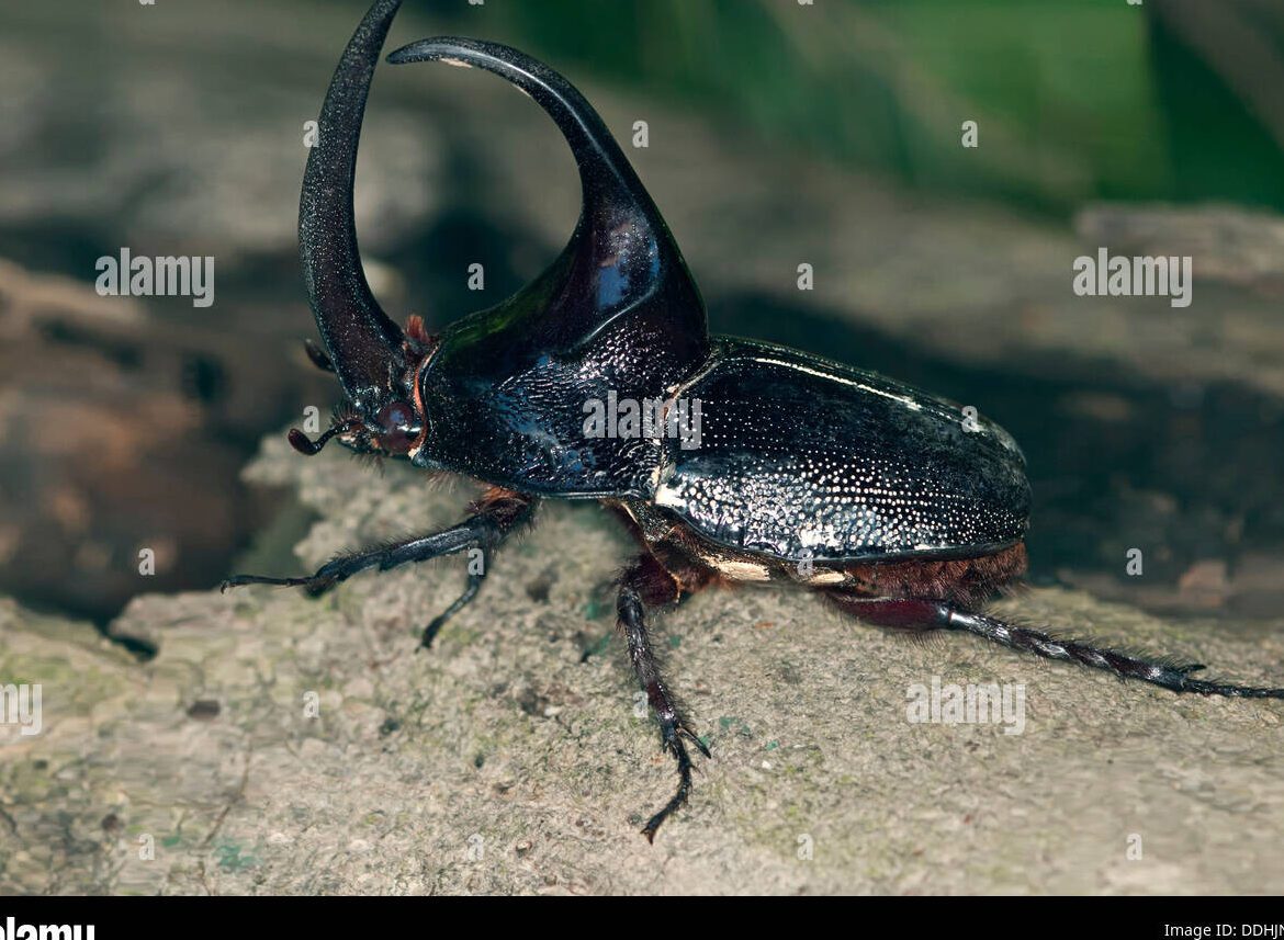 Los escarabajos rinoceronte, pertenecientes a la familia de los escarabeidos, son conocidos por su distintivo cuerno en el pronoto, la parte superior del tórax. Estos escarabajos pueden alcanzar tamaños impresionantes, llegando a medir hasta 17 centímetros de longitud. Algunas especies de escarabajos rinoceronte, como el escarabajo Atlas, son consideradas los escarabajos más grandes del mundo. Estos escarabajos se encuentran principalmente en regiones tropicales y subtropicales de Asia y África.